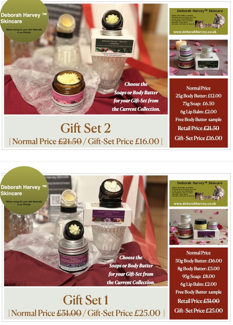 For full details please see below, where you can find be to see my range of Body Butters & Soaps and of course sample the smooth nourishment and just see for yourself the difference Deborah Harvey Skincare really has on your skin.
