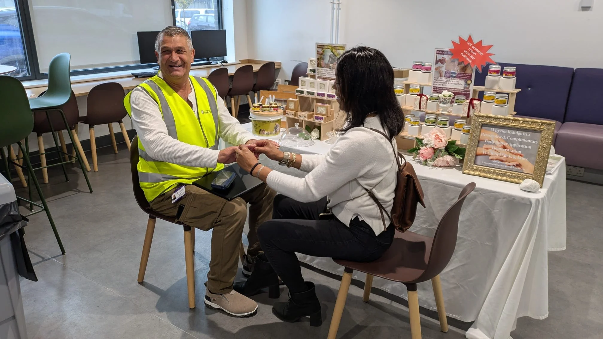 Hand massage demonstration at an event in Harrow.