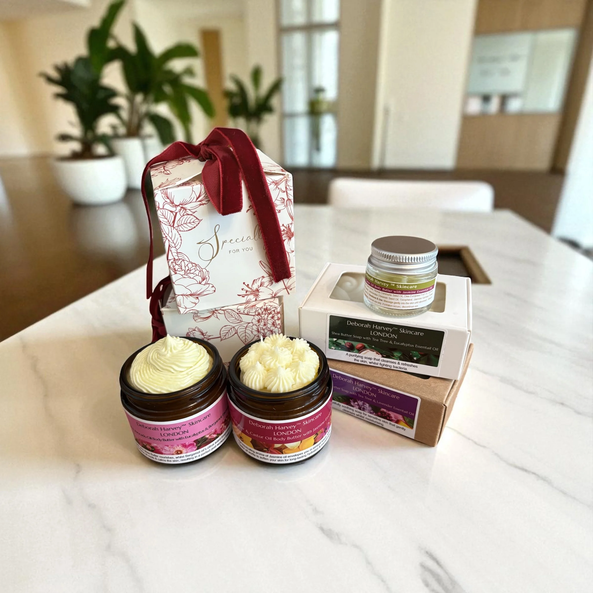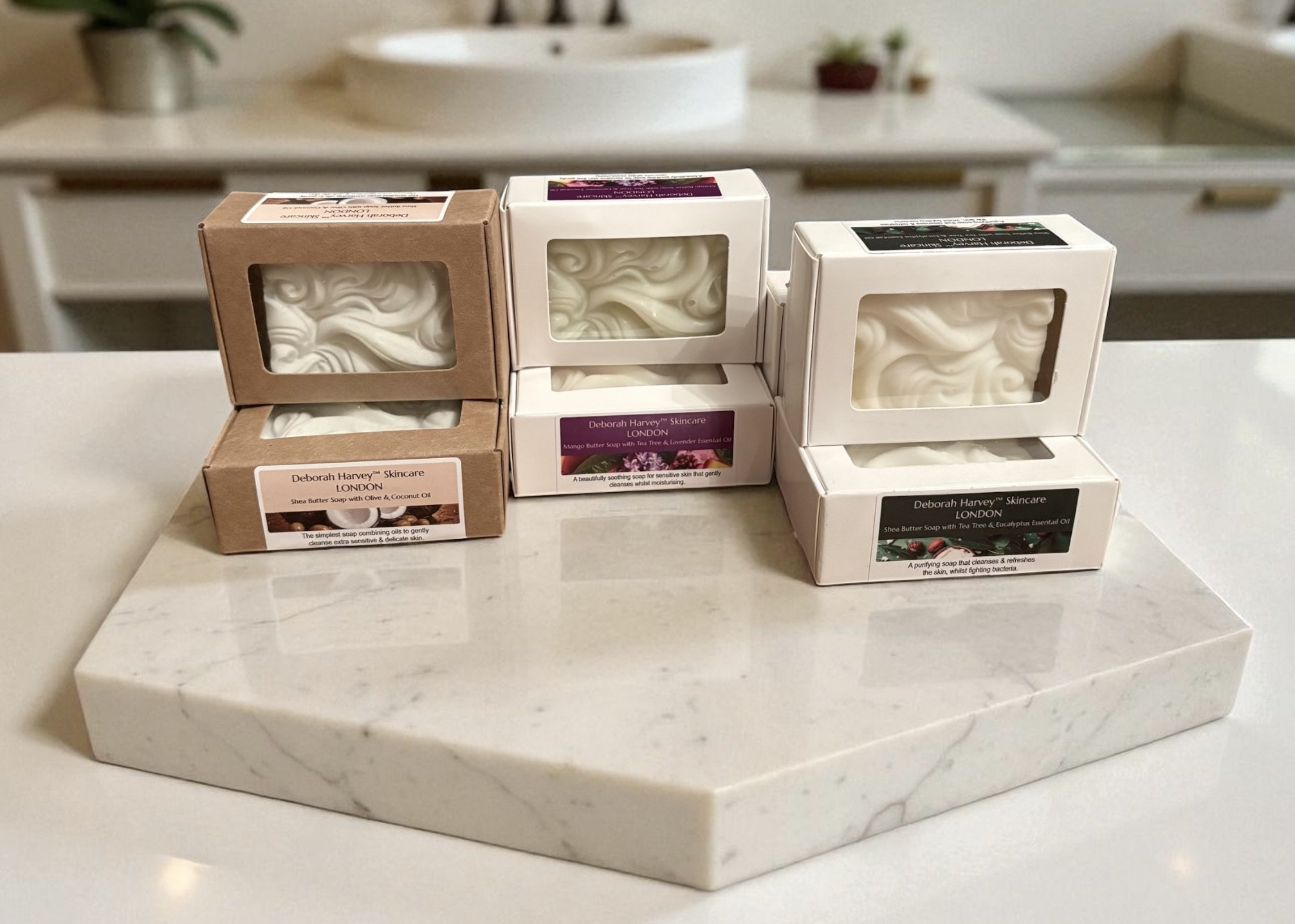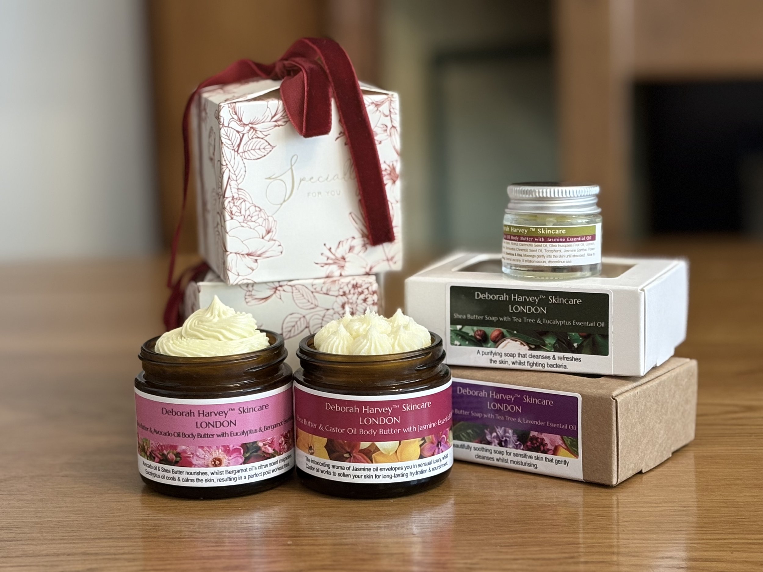 Unlock the secret to radiant, nourished skin with my exclusive line of Body Butters & Soaps that are unique to Deborah Harvey Skincare and a steadfast commitment to quality. All products are handcrafted in small batches, allowing me to focus on quality and attention to detail. No colouring, no petals, no grains, just simple, effective and long-lasting skincare.